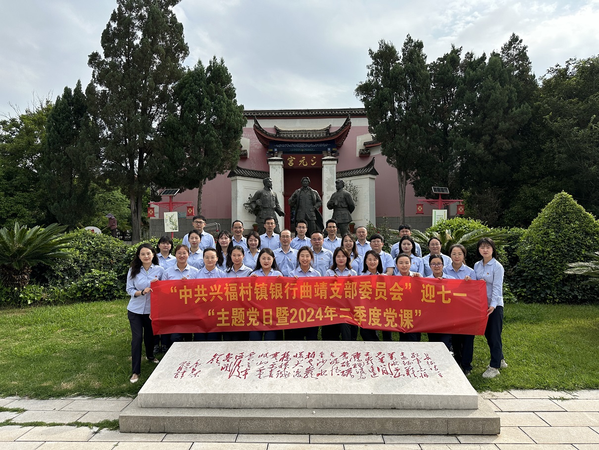 为庆祝中国共产党成立103周年,教育引导广大党员干部坚守初心使命、坚定理想信念,持续推进村镇银行良好法人文化建设。6月22日,中共兴福村镇银行曲靖支部委员会组织沾益、陆良兴福村镇银行党员干部一行28人前往三元宫爱国主义教育基地,开展迎“七一”主题党日活动。